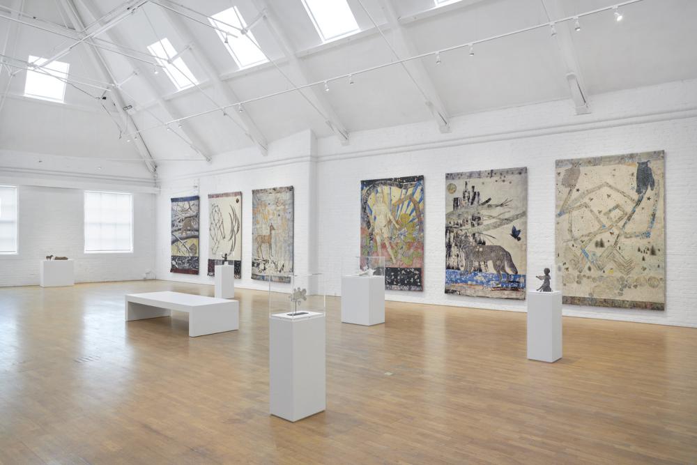 There is an abundance in Kiki Smith’s choice of materials. The exhibition emphasises her material experimentation, from bronze, plaster, glass, and porcelain to paper, pigment, aluminium, latex, feathers, and beeswax amongst countless others – demonstrating her constant curiosity and desire for discoveries. A major focus of the exhibition has been placed on three distinctive areas of Kiki Smith’s work: the small sculptures, a selection from her printmaking oeuvre, and the Jacquard tapestries.