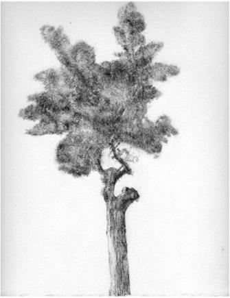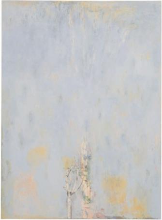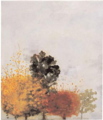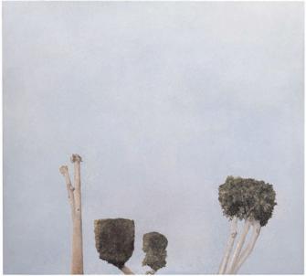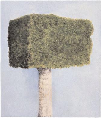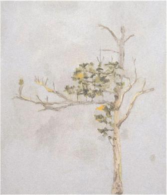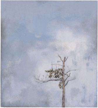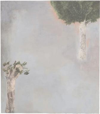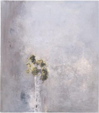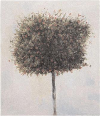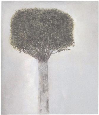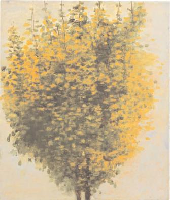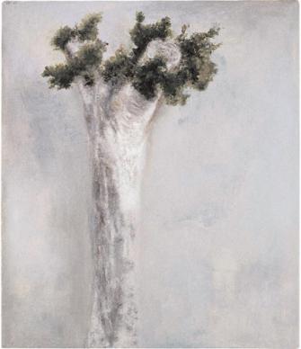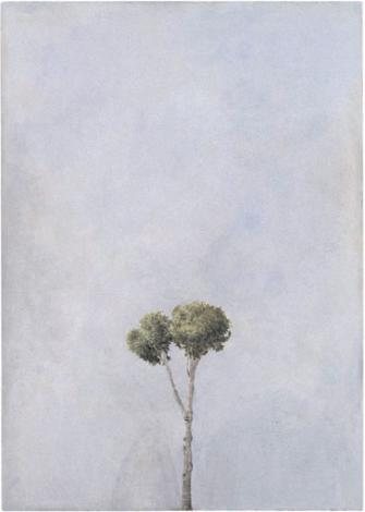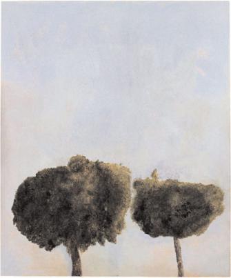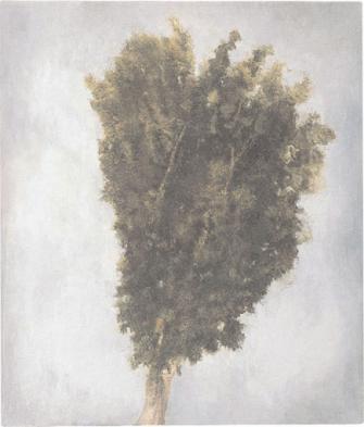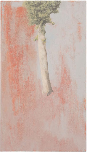 Man stelle sich den Raum vor, in dem diese kleinen wunderbaren Bilder in Öl und Wachs entlang den Wänden aneinander gereiht sind wie Bäume einer Allee. Flanieren wir vorbei, verweilen und schauen wir und erfahren ihre Präsenz. Wie sensibel und fein sie gemalt sind! In Sujet, Pinselstrich, Farbe und Licht erinnern sie an die alten Meister und sind doch fern einer traditionellen Landschaftsmalerei. Baum für Baum, einzeln, wie Portraits, herausgelöst aus ihrer Umgebung: ohne Erdboden und ohne Horizont. Sie entwachsen der unteren Bildkante und füllen beinahe die ganze Leinwand. Sie breiten ihre Äste in eine Fläche von vielerlei Grau, das andere Farben einschließt, Blau, Rosa, Violet, Pink, matt samtig modelliert. In der Wiederholung der Komposition entfaltet sich eine schier unerschöpfliche Vielfalt der Farben und Formen. Langsamkeit und Sorgfalt sind jenen Bildern eingeschrieben, Gedanke und Gefühl. Das Pathos der Geschichte der Malerei und etwas sehr Zeitgenössisches verbinden sich in ihnen. Ihre Schönheit, ihre Anmut und Melancholie sind verführerisch. “The brushwork, lines and contours are carefully and delicate, drawing on the sheer love for painterly tradition and accomplishment as if the brazen iconographic humor of Guston were somehow transmuted back through the strategies of Italian Renaissance.” (Fred Dewey) Nehmen wir ihre Einladung zum aufmerksamen Betrachten und zur Kontemplation an!
