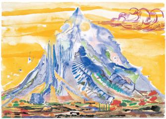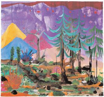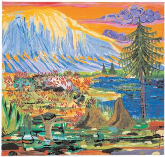 Abel Auers Bilder sind in Auseinandersetzung mit der Landschaftsmalerei des 19. Jahrhunderts entstanden. Und sie sind inspiriert von frühen Seher fahrungen des Künstlers. Abel Auers Großvater war Landschaftsmaler, das großelterliche Haus voller Bilder. Selbst nun Landschaften zu malen, bedeutet auch Rückbezug auf die eigene Kindheit. Wie Archetypen wirken die Motive seiner Gemälde und der Aquarelle und phantasievoll wie von Kinderhand gemalt, bunt und grell, pink, gif tgrün, rauschhaft, manchmal am Rand des Erträglichen. Die Idylle wird aggressiv und ist in der geballten Kraft der Farben nur schwer zu ertragen. Es sind Traumwelten, Gegenwelten zur eigenen urbanen Lebenswelt - dem Randgruppenviertel der Großstadt, "Taxidriver"-Milieu -, obsessiv gemalt. Wohnen und arbeiten – das ist bei Abel Auer wie in einer Höhle, die Fenster verhüllt, der Raum voller Bilder. Eine eigene Welt von solcher Wucht, daß Imagination und Wirklichkeit zusammen fallen in der Vision, daß, öffnete man die Fenster, die Welt draußen nicht anders aussähe. Als Kai Althoff diese Bilder sah, machte es ihm Mut und große Freude, auf sie malerisch zu antworten.
