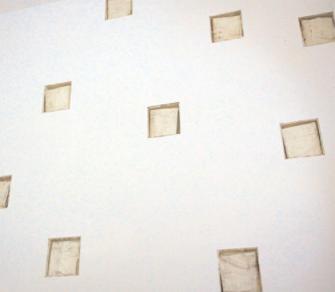 Das ist kaum zu beschreiben, letztendlich vielleicht nur zu fühlen. Sicher, es bieten sich Vergleiche an, aber sie taugen wohl nur zur Abgrenzung. Carrolls Arbeit hat nichts gemein mit den Kisten und Kästen und gestapelten Materialien und Verhüllungen von "Storage", er archiviert nicht konkrete historische Spuren. Carroll repräsentiert nicht die Minimal Art, auch wenn seine Formensprache minimalistisch ist. Und auch gehört er nicht zur Arte Povera, wenn gleich seine Materialien arm anmuten. Die bloße Form interessiert ihn nicht und auch nicht die Sinnhaftigkeit des Materials. (Wie illuster die Geschichte der Leinwände sein mag – daß sie Zelte sind, je neun zusammen geschlossen zu einer einzigen Fläche in jeder Box, und gebraucht - deutsche Volksarmee, Schutz, Behausung, Camouflage, Verteidigung, Versteck –, das ist nicht von Bedeutung.)